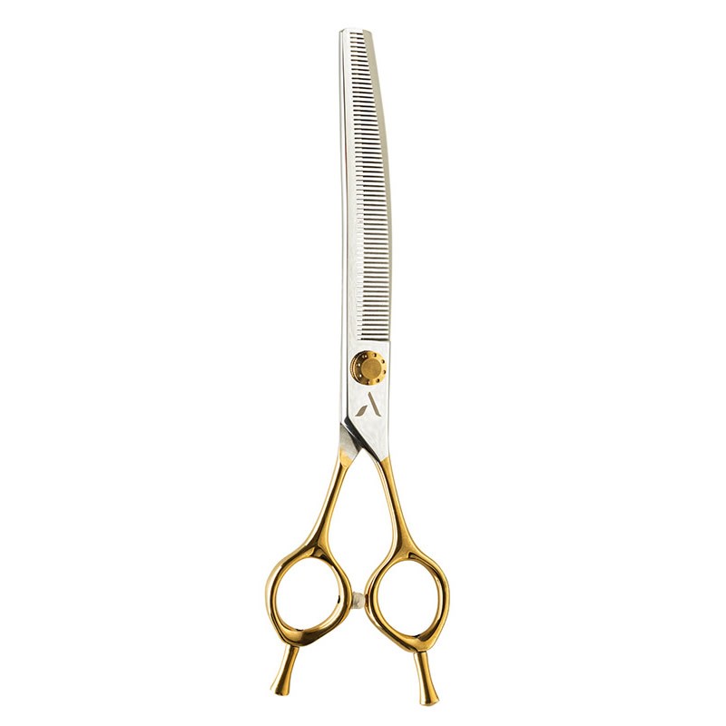The Lady Marion luxury scissors with 44 curved V-shaped teeth are the ideal companion for groomers who accept no compromise between aesthetics and functionality: a tool that combines beauty, effectiveness, and durability.